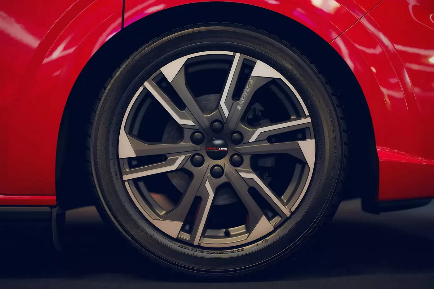 Дополняют образ оригинальные 19-дюймовые колеса. В салоне установлены кресла с развитой боковой поддержкой, обивкой кожзамом и прострочкой красного цвета.